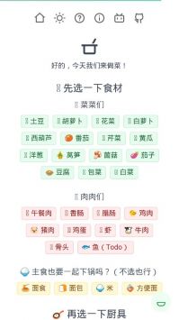 1、帮助用户筛选菜谱、选择手头食材和烹饪工具的软件;