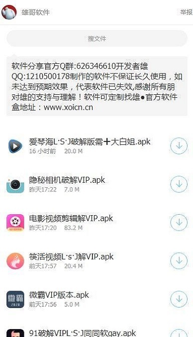 雄哥软件盒子是一款应用,大家可以在里面找到各种各样的软件,软件种类丰富、分布广泛,能从中获取更多软件资源。如果自己喜欢的软件不好找,也可以通过这款软件搜索,不仅下载速度快,而且十分安全。
