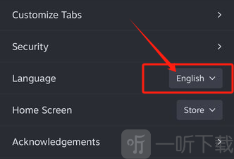 3、进入设置界面后,选择“界面”选项,找到“语言”(language),点击进入该设置项。