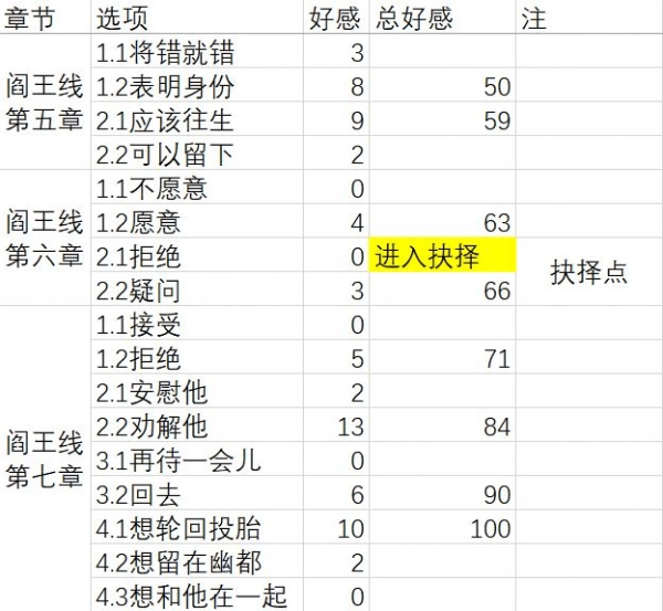 ①想轮回投胎+10②想留在幽都+2③想和他在一起+0