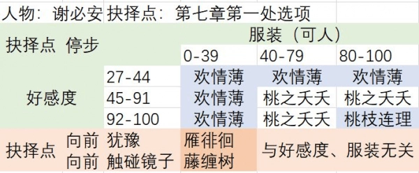 2好感度处于44到99之间,或者好感度达到100但可人不足4瓣→结局为桃之夭夭