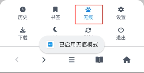 3、选择并点击“无痕浏览”这个特定选项,点击完成后,相关功能即刻生效。