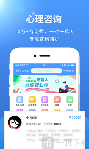 赛客倾诉这款软件用起来真的挺不错的,它帮助了很多人重新找回了属于自己的快乐。操作方面特别简单,不管遇到什么问题都能在里面咨询,专业的导师们总能给出让人满意的解答,帮你找回一天的好心情。还在犹豫什么呢?快来体验吧!