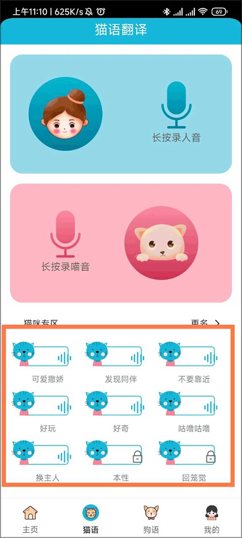 我们先进入,在底部找打【猫语】点击进入猫语界面。