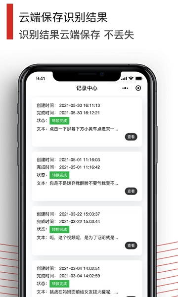 (2)语音转文字:该功能能够从音视频文件中提取文本内容,支持wav、mp3、m4a、mp4、wma、3gp、aac、ogg-opus、flac等多种音视频格式的提取。