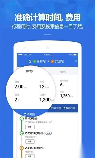 3. 提供详尽的换乘指引、预计耗时、途经站点以及乘车花费。
