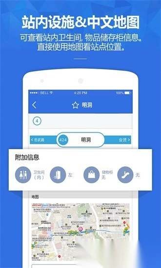 4. 可查找站内卫生间、储物柜等便利设施位置;
