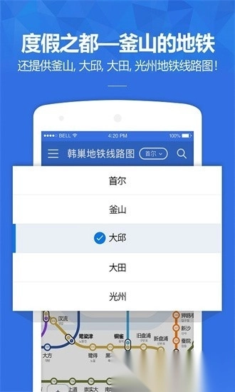 1. 可查询首尔、釜山、大邱、大田、光州的地铁路线;