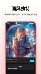 1、ai创作:释放你的想象力,只需输入画面的核心主体,再选择你想要的创作风格,点击一键生成,就能把那些天马行空的灵感转化为实实在在的艺术作品。