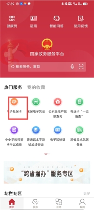 1、进入软件首页,我们在热么服务中点击电子社保卡;