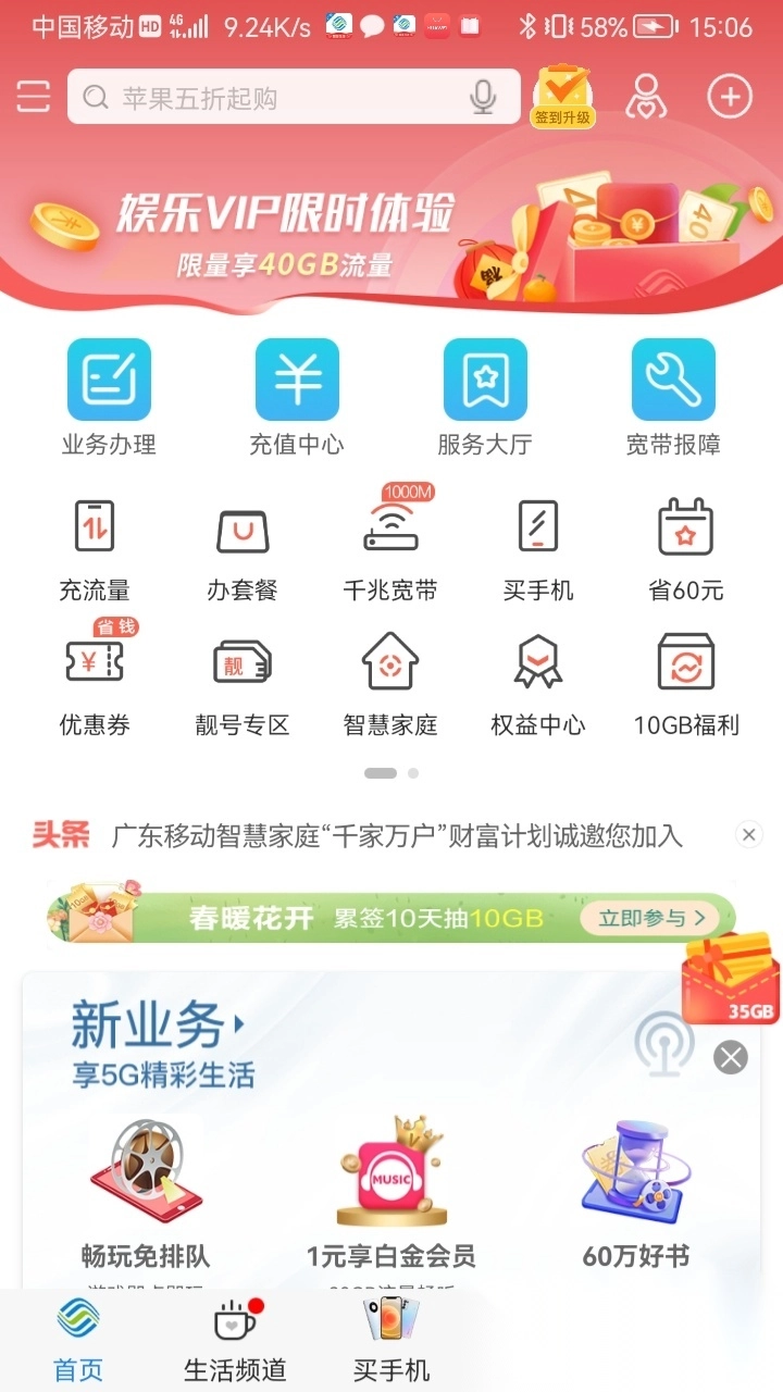 专享本地优惠活动,低价购买流量包;