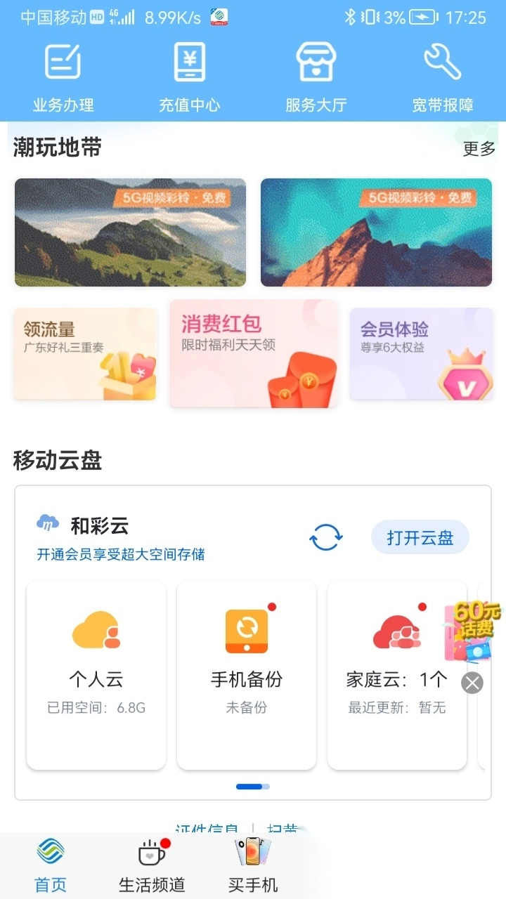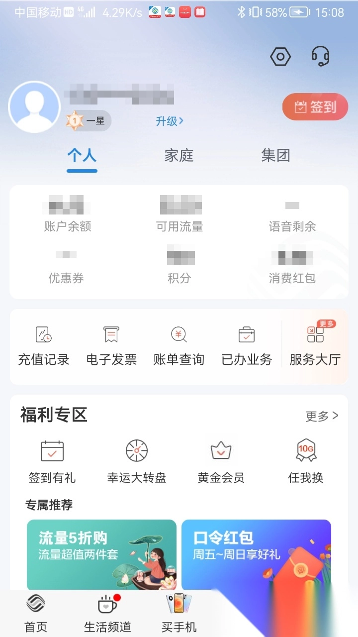 套餐变更、账单查询、积分兑换等功能都整合到了统一的界面中。