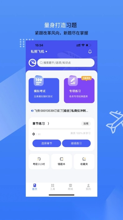 私照、商照、仪表、航线、运动照、直升机等多种类型真题模拟;机务、管制、无人机等专业学习资料一应俱全。