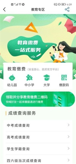 1、在首页中间我们可以看到有一个教育缴费专区,点进入;