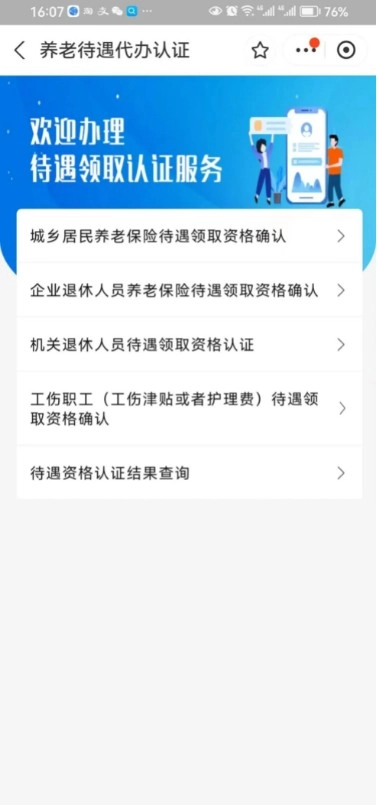 2、点击“养老认证”,依据实际情况挑选认证类型,再选择本人认证或者帮亲友认证。