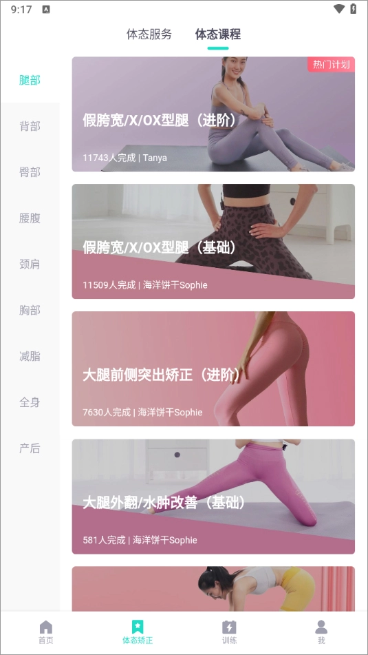 1、首先进入后,在体态矫正界面可以查看其他人的改善案例。
